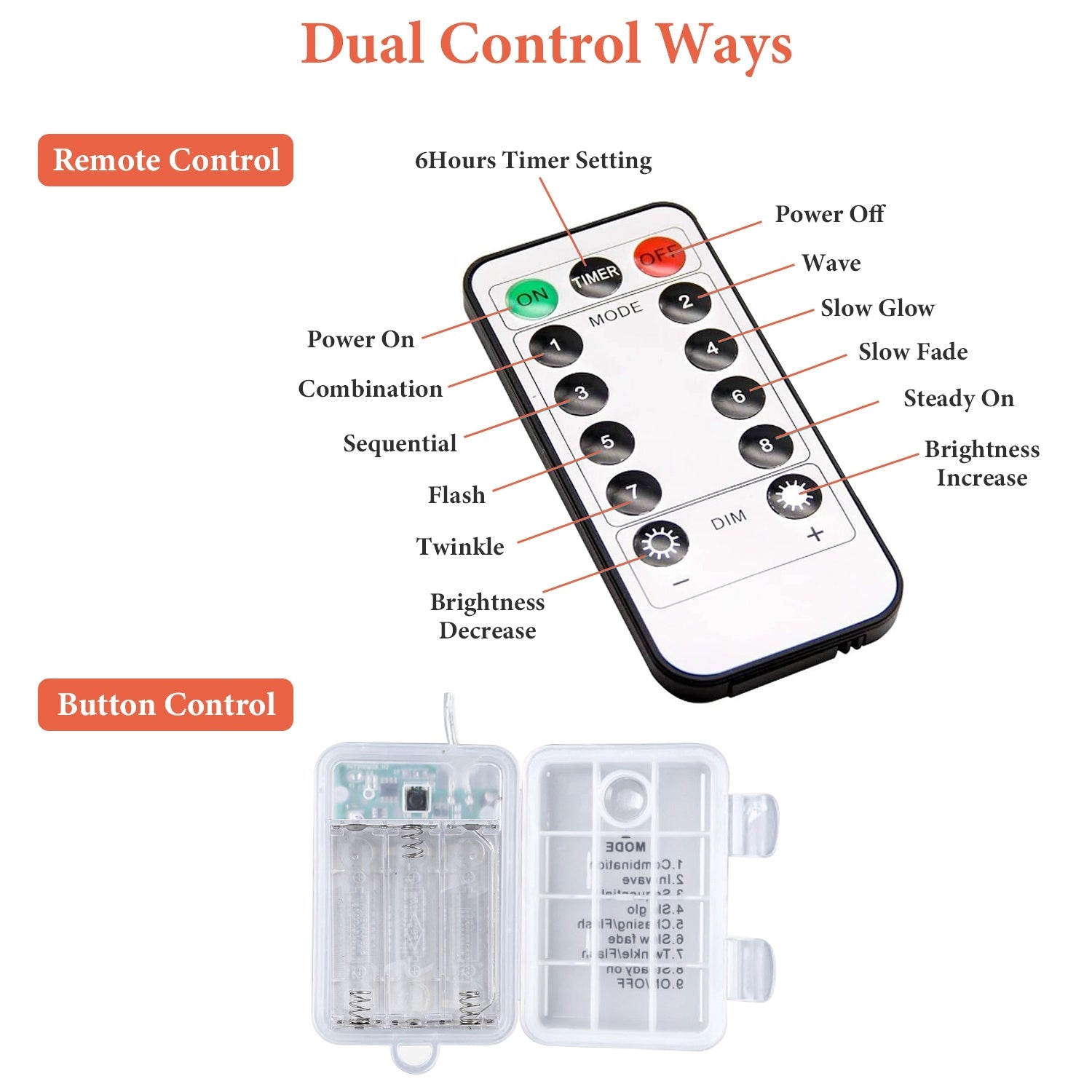 Lighting Modes: 8 Modes(Combination, Wave, Sequential, Slow Glow, Flash, Slow Fade, Twinkle, Steady On)